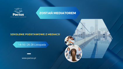 Więcej informacji i zapisy przyjmujemy na stronie https://pactus.pl/szkolenia/szkolenia-dla-mediatorow/
